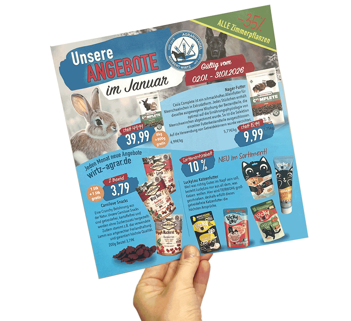 Unser Heimtier-Sortiment umfasst neben Ausstattung und Pflegeprodukten eine Auswahl an hochwertigen Futtersorten.