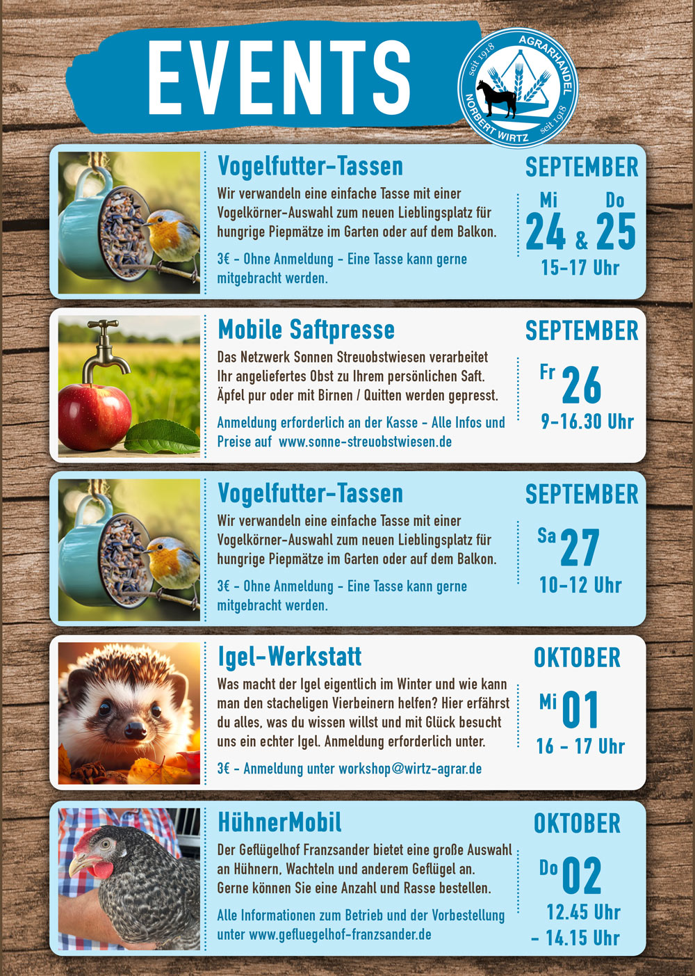 Als Norbert Wirtz mit seiner Frau Gertrud im Jahr 1918 sein Unternehmen gründete, legte er den Grundstein für die folgenden Generationen. Aus dem Kartoffelhandel mit Schälbetrieb erwuchs im Laufe der Jahre ein Landhandel, der Ende der neunziger Jahre um unseren heutigen Tier und Gartenmarkt erweitert wurde.