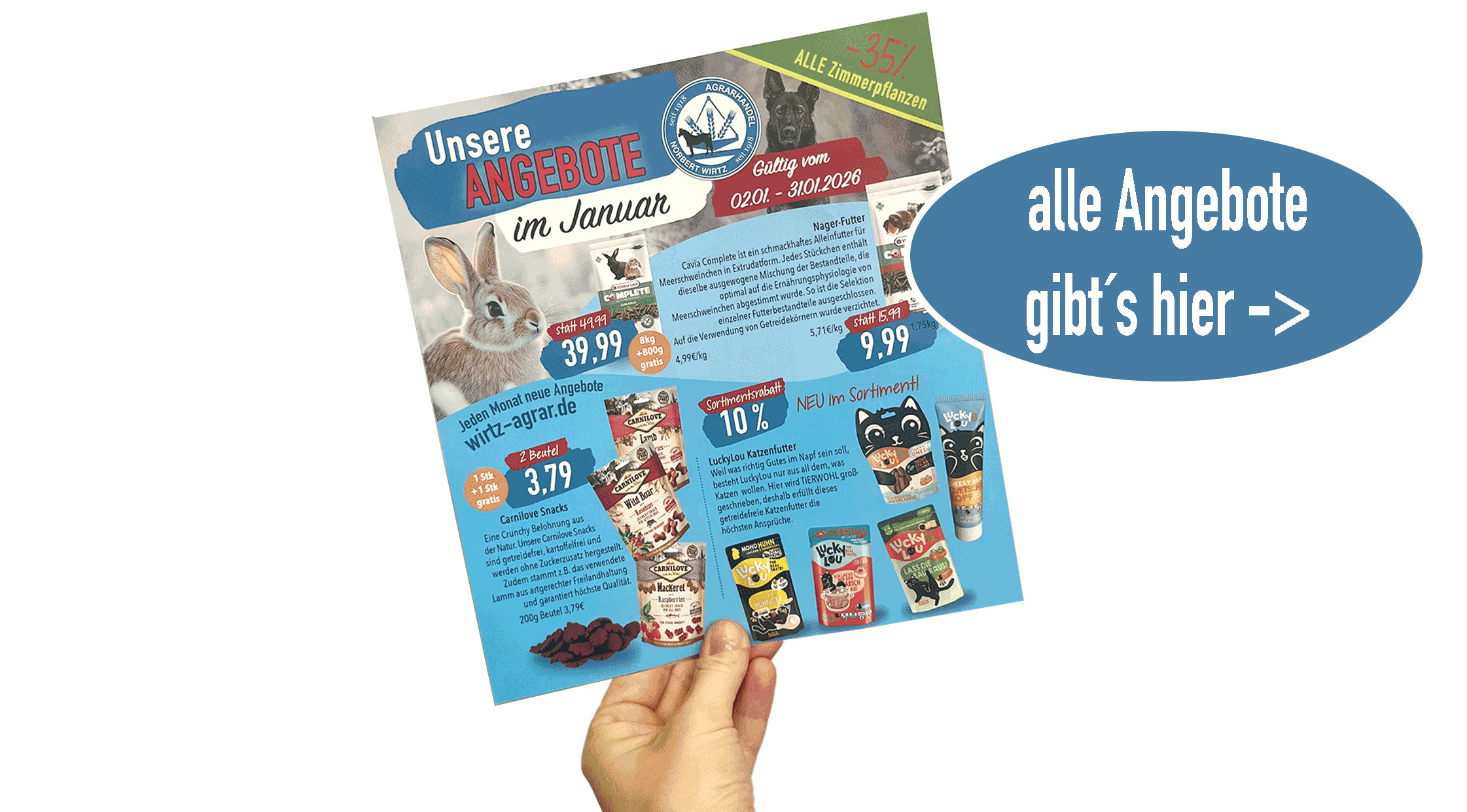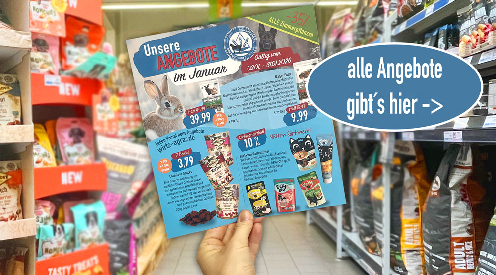 Unser Heimtier-Sortiment umfasst neben Ausstattung und Pflegeprodukten eine Auswahl an hochwertigen Futtersorten.