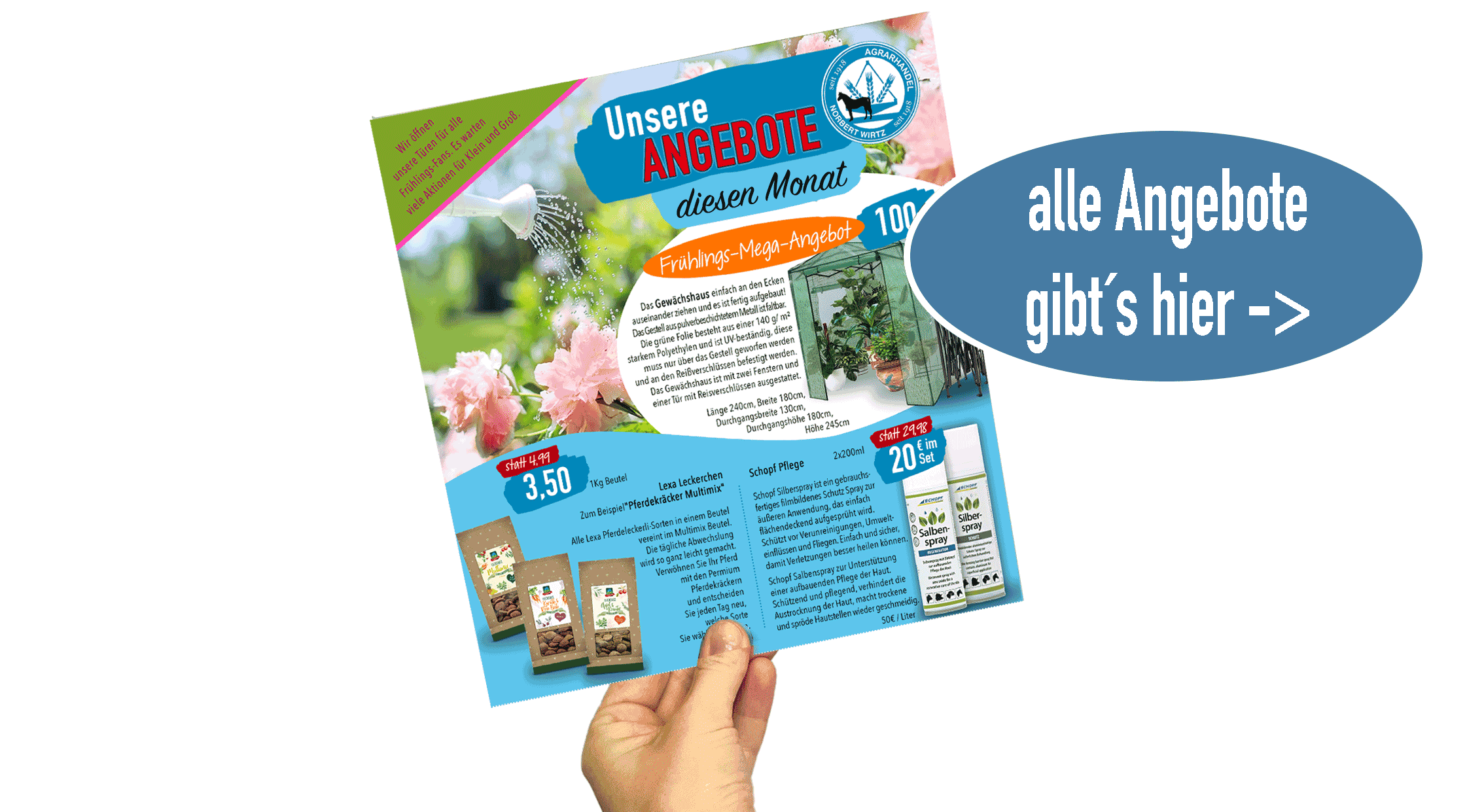 Pferd und Reiter kleiden wir gerne ein und beraten Sie zur richtigen Fütterung.